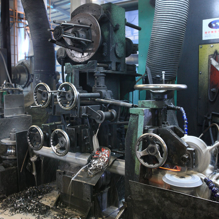 成型後未焊接的管狀需通過高頻感應線圈加熱焊接,鋼管經過高週波焊接後冷卻、 整型調整大小、切割到成品包裝。